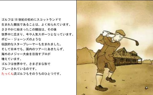 ゴルフのルーツやゴルフの難しさ、楽しさを主人公を軸にして面白おかしく語っていきます。